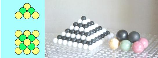 田嘉夫教授与团队结合上述两种堆型存在的问题,提出一种新型高温气冷堆成熟技术——规则床模块式高温气冷堆。规则床模块高温气冷堆将燃料球在堆芯的随机堆积转变成有序排列,采用球床高温气冷堆同样的燃料球,适用于同样的强放射性环境。如何使燃料球从堆顶落入堆芯后形成规则堆积?田嘉夫教授的研究表明只要在堆芯的底面上加工很多半球形凹陷,使落入的燃料球成正方形排列,每4个球的中心又形成新的凹陷,成为次一层球的位置,以此层层累积就形成了正四棱锥规则堆积(图1)。这时围成堆芯的侧壁呈正方形、长方形或是八角形。这种改进能全面提升反应堆性能和参数,排除球形燃料堆设计中的不确定因素,简化堆体结构和运行方式,使燃料装卸运输和贮存发生重大变化。特别是它能建立一种燃料元件在大小堆循环利用的方法,使小堆燃料成本大大降低。