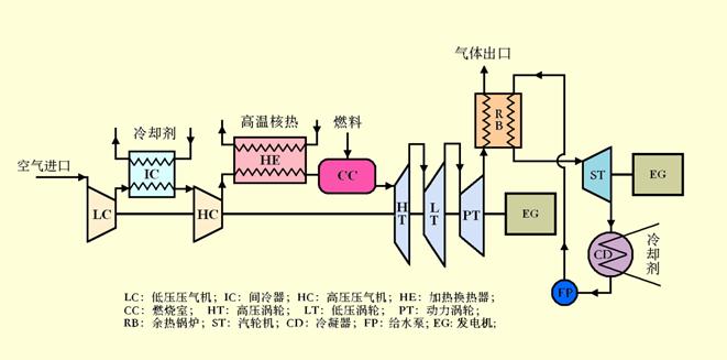 2、高温气冷堆与天然气燃气轮机相结合的双燃料新型发电模式