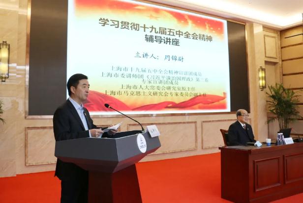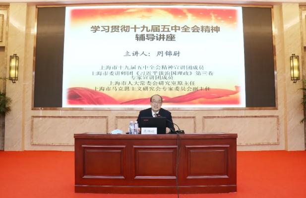 会上,宣讲团成员、上海马克思主义研究会专家委员会副主任周锦尉从十九届五中全会的重大意义,标注的发展方位,全会明确的目标、原则、任务,以及《建议稿》起草的主要特点、主要考虑、基本逻辑框架等方面对全会内容进行了细致的解读。并就结合当下实际,推动全会精神在企业落地生根,如何把握新发展阶段、贯彻新发展理念、构建新发展格局等重大问题进行了深入的阐述。近三个小时的授课,台上讲得投入,台下听得认真。