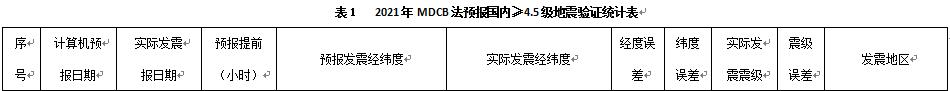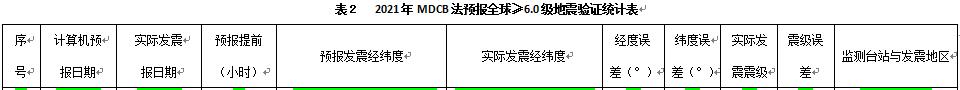 2021年MDCB法预报全球≥6.0级、国内≥4.5级地震情况说明