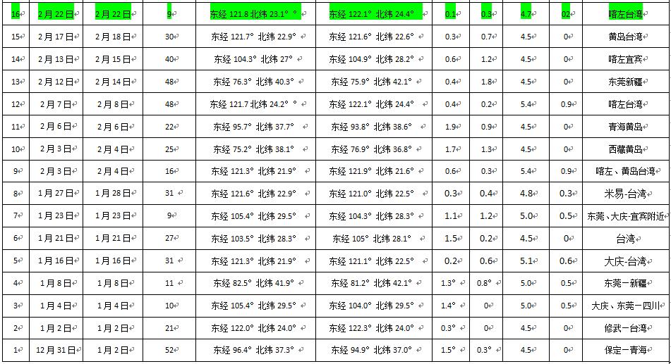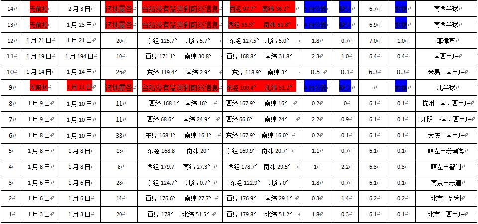 下面表1和表2是2021年对于国内发生≥4.5级地震、全球发生≥6.0级地震预报及验证登记表(详查这些预报验证情况可见压缩的附件),