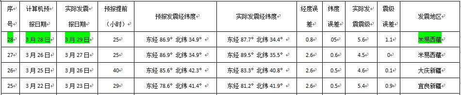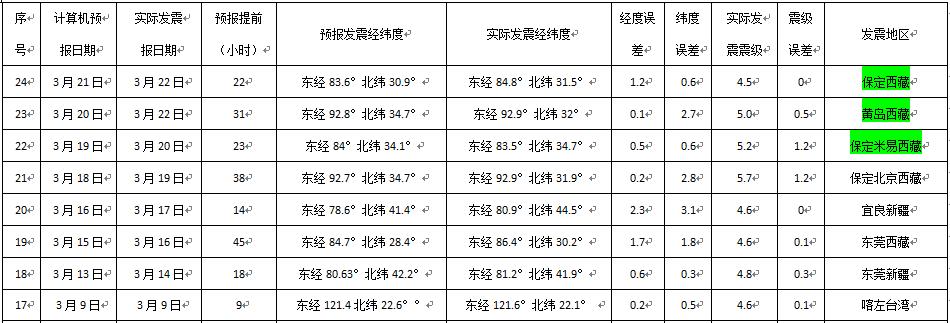 2020年对国内发生的113个≥4.5级地震,在国内外只有18台仪器的情况下,MDCB法在处理的成果——《临震预报表》中,就有1-3台仪器对这些地区的地震能提前几个小时——48个小时做出临震预报;