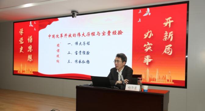 会议期间还举办了“学党史、悟思想、办实事、开新局”第二期专题读书班,邀请中共湖北省委党校经济学与经济管理教研部副主任郝华勇讲授了题为《中国改革开放的伟大历程与宝贵经验》的专题党课。