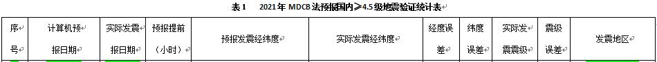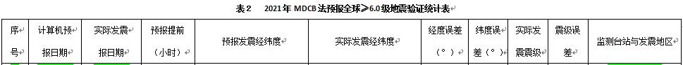 2021年MDCB法预报全球≥6.0级、国内≥4.5级地震情况说明