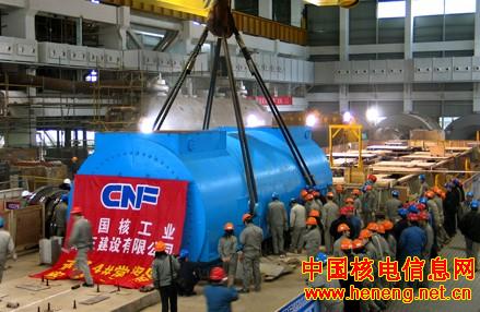 2月26、27日,中核建设集团五公司承建的秦山核电二期扩建工程4号机组常规岛发电机定子和压力容器顺利吊装就位,自此,由中核建设集团五公司承担的4号机组主设备安装工作全面展开。 4号常规岛发电机长约10米、宽4米、高约4米、净重315吨,加上平衡梁及吊装钢索、钩头,此次吊装的定子实际重量为362吨,是4#常规岛中重量最重的设备。 压力容器是维持、控制核裂变的反应装置,是核电站的核心设备之一。4号机组反应堆压力容器是我国自主设计且首台所有主体锻件全部国产的反应堆压力容器。此次吊装的设备净重266吨,外形尺寸为6200×5282×10337毫米。 为了保证此次吊装的安全顺利进行,中核建设集团五公司前期做了大量细致而周密的准备工作,制定专项施工进度计划,细化工作任务,并开展专项培训,最终确保了常规岛发电机定子和压力容器的成功吊装就位。
