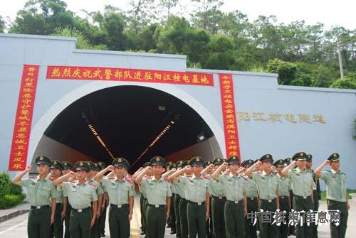 为保障核电基地建设和运行安全,在武警总部、广东武警总队、阳江市委市政府和中广核电集团的共同努力下,武警阳江支队1日正式进驻阳江核电基地。