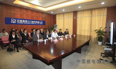 2010年11月24日下午,三门核电有限公司在三门核电分会场组织参加中核集团公司安全环保电视电话会议。中核集团公司副总经理余剑锋,人力资源部主任王安民,中核核电党委书记马飞,三门核电有限公司总经理顾军,副总经理缪亚民、李远、苏凤国,安全质量总监金湘及各处室主要负责人参加会议。
